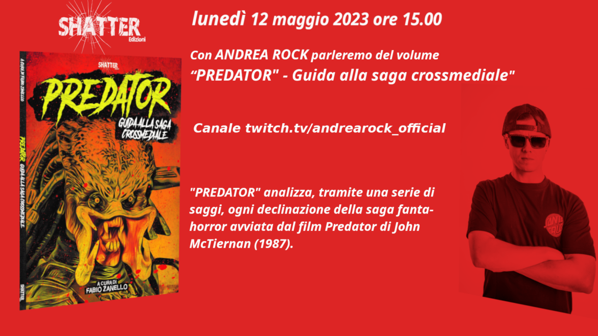 Lunedì 12 giugno 2023, alle 15.00, sul canale https://www.twitch.tv/andrearock_official, non perdete la presentazione del nuovo volume targato SHATTER “PREDATOR – Guida alla saga crossmediale”, a cura di Fabio Zanello.